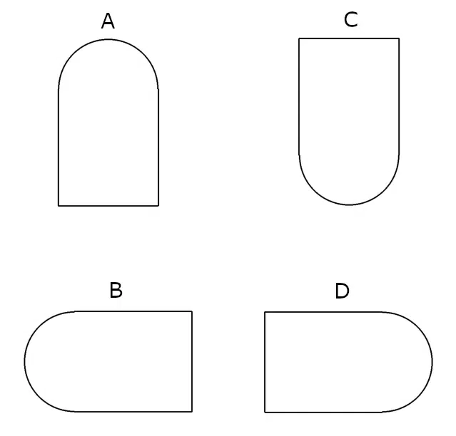 Przy składaniu zamówienia prosimy o wybór wariantu ułożenia lustra: A, B, C lub D (zgodnie z schematem).